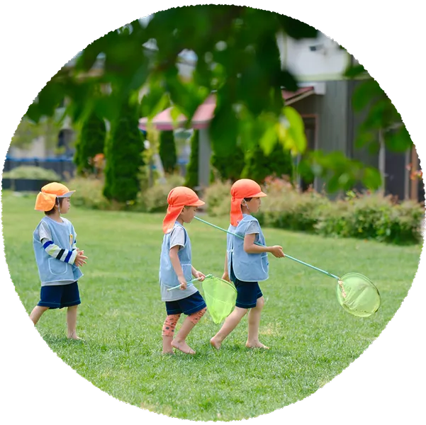 - 自然の中で風や光を感じながら、思いきり体を動かすことで、子どもたちの体はのびのびと育ちます。五感をひらき、感覚を通して得た刺激が、からだと心の健やかな成長につながっていきます。