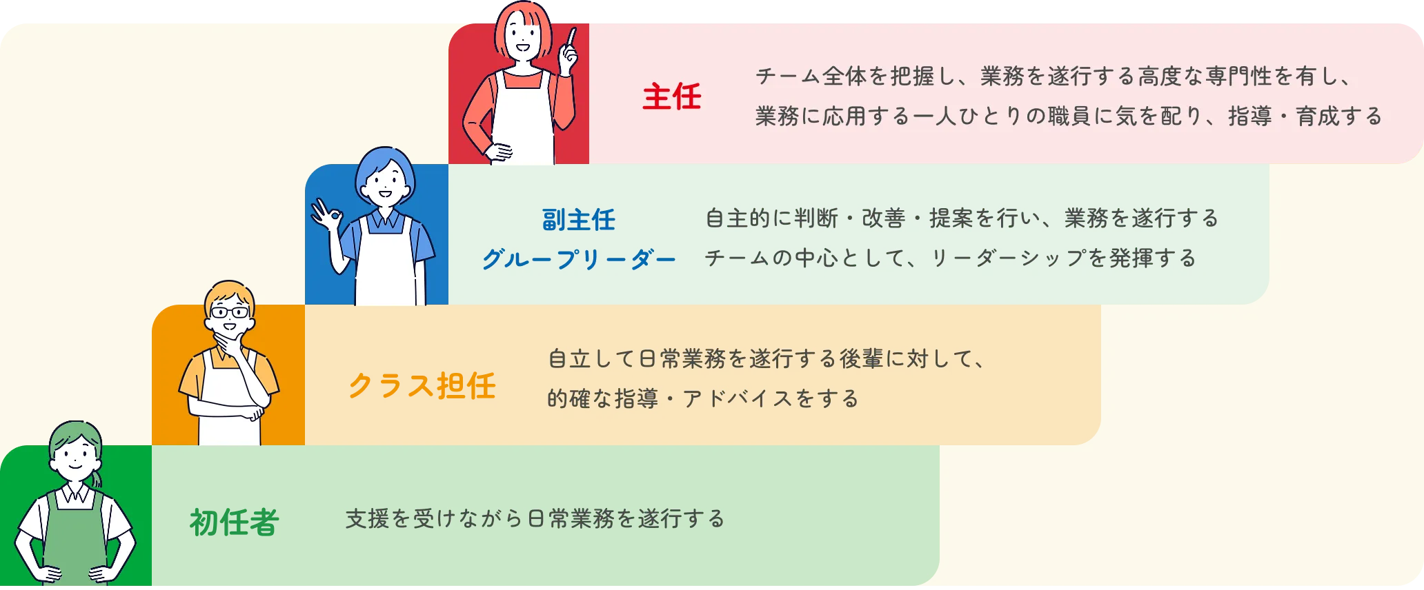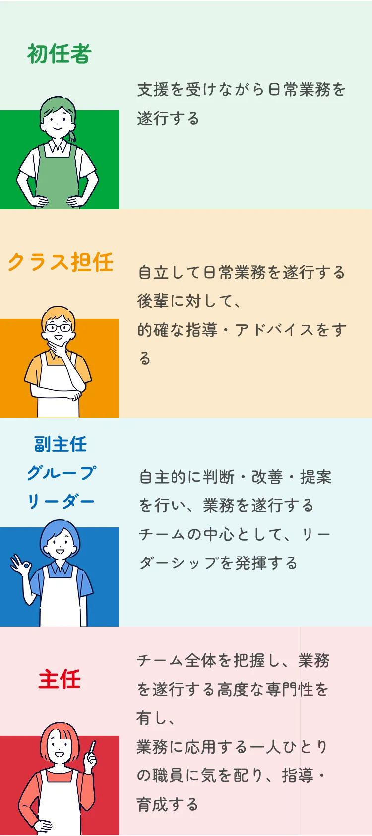 着実にステップアップしていくために、経験に応じた人材イメージを明確にしています。